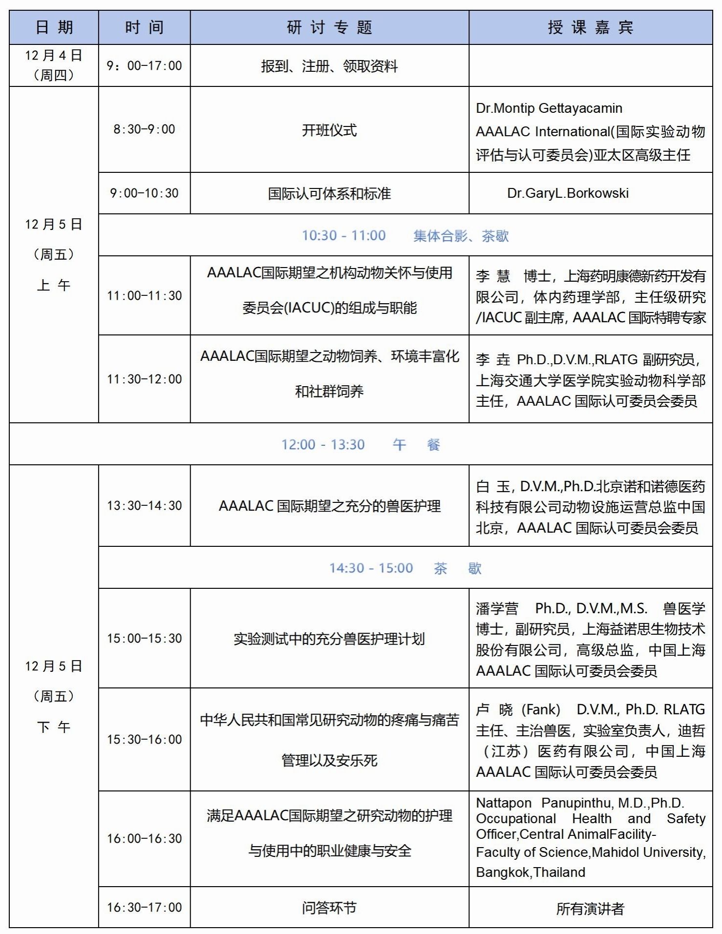 该培训面向寻求或已获得AAALA国际认可的机构和人员,包括高校、研究、CRO 等机构实验动物饲养管理与使用委员会(IACUC) 成员、兽医、动物设施管理人员以及其他与动物护理相关人员。