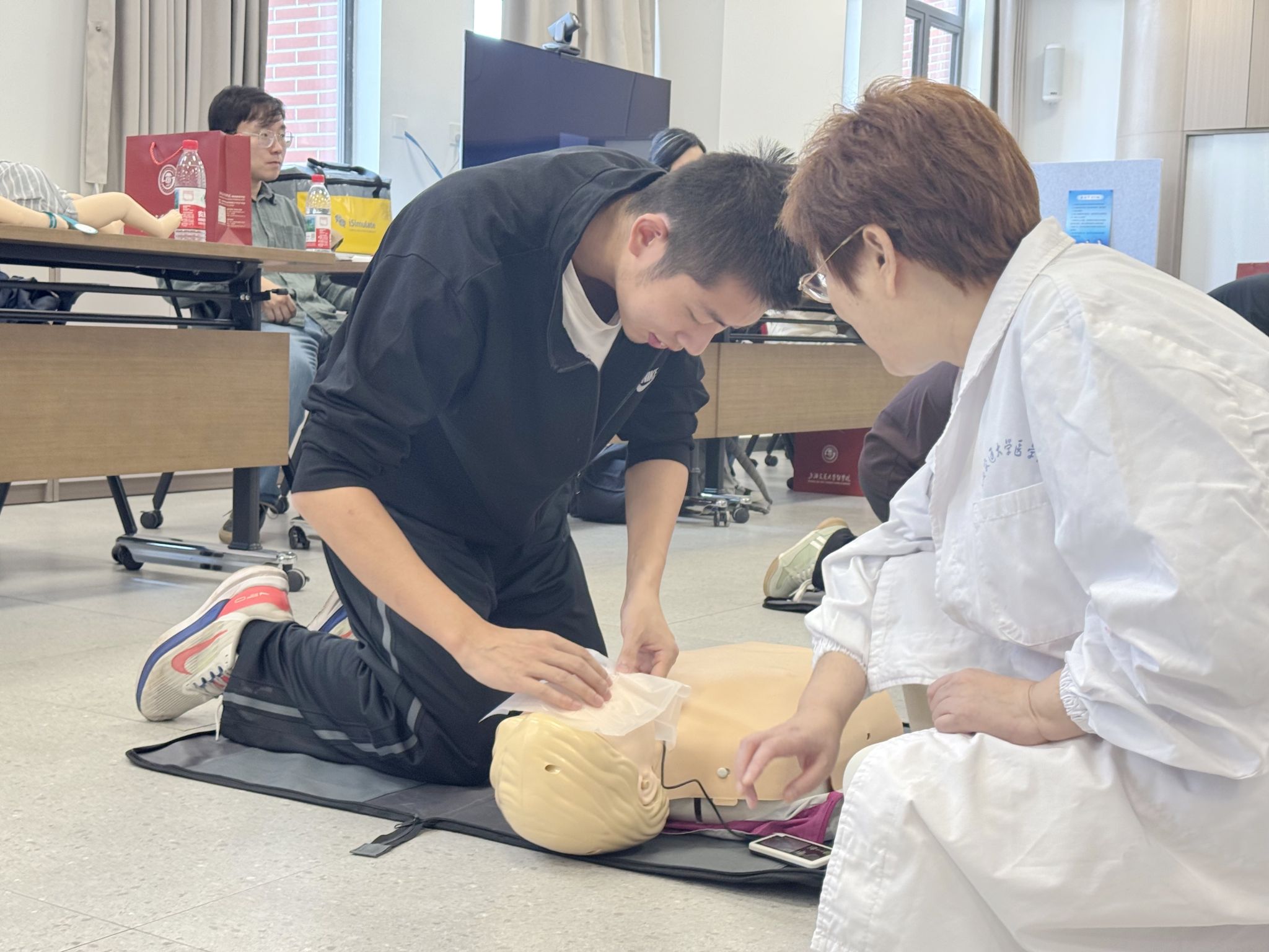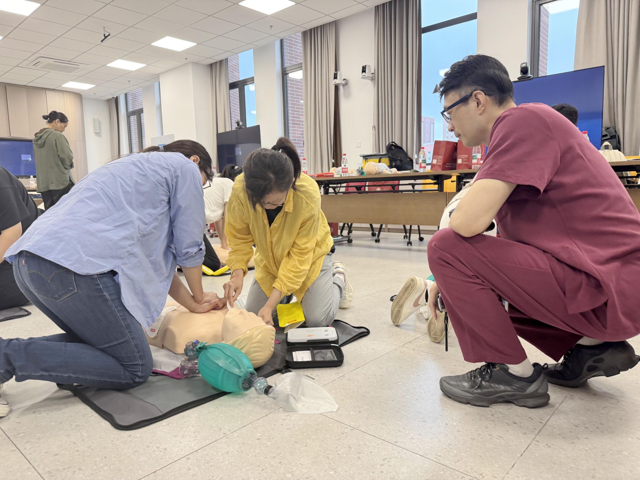 (图注:基础生命支持课程BLS实操教学)