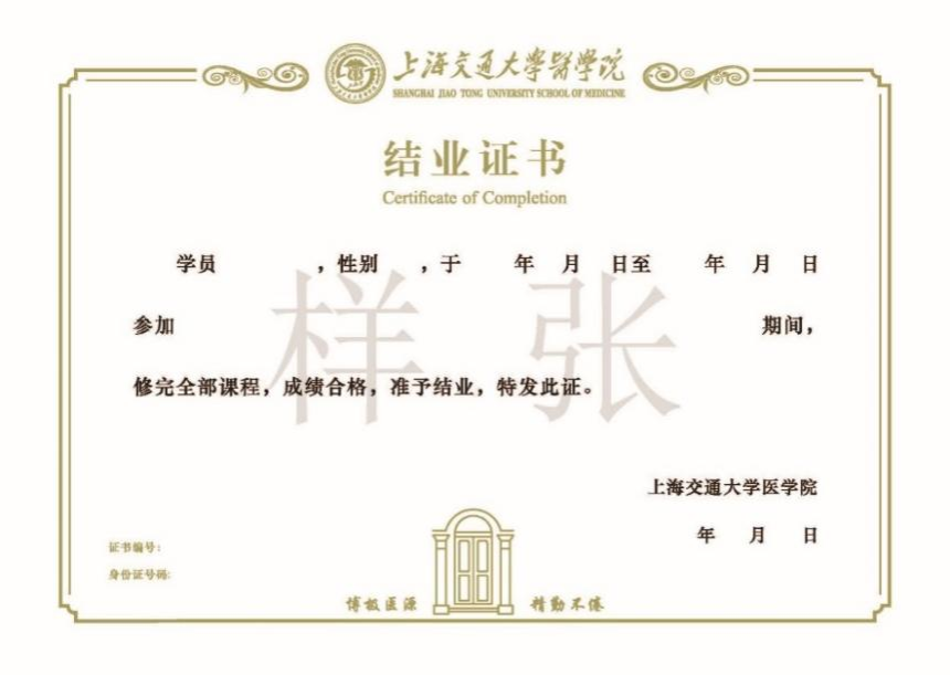 1.学员在培训结束后可获得上海交通大学医学院颁发的培训结业证书。