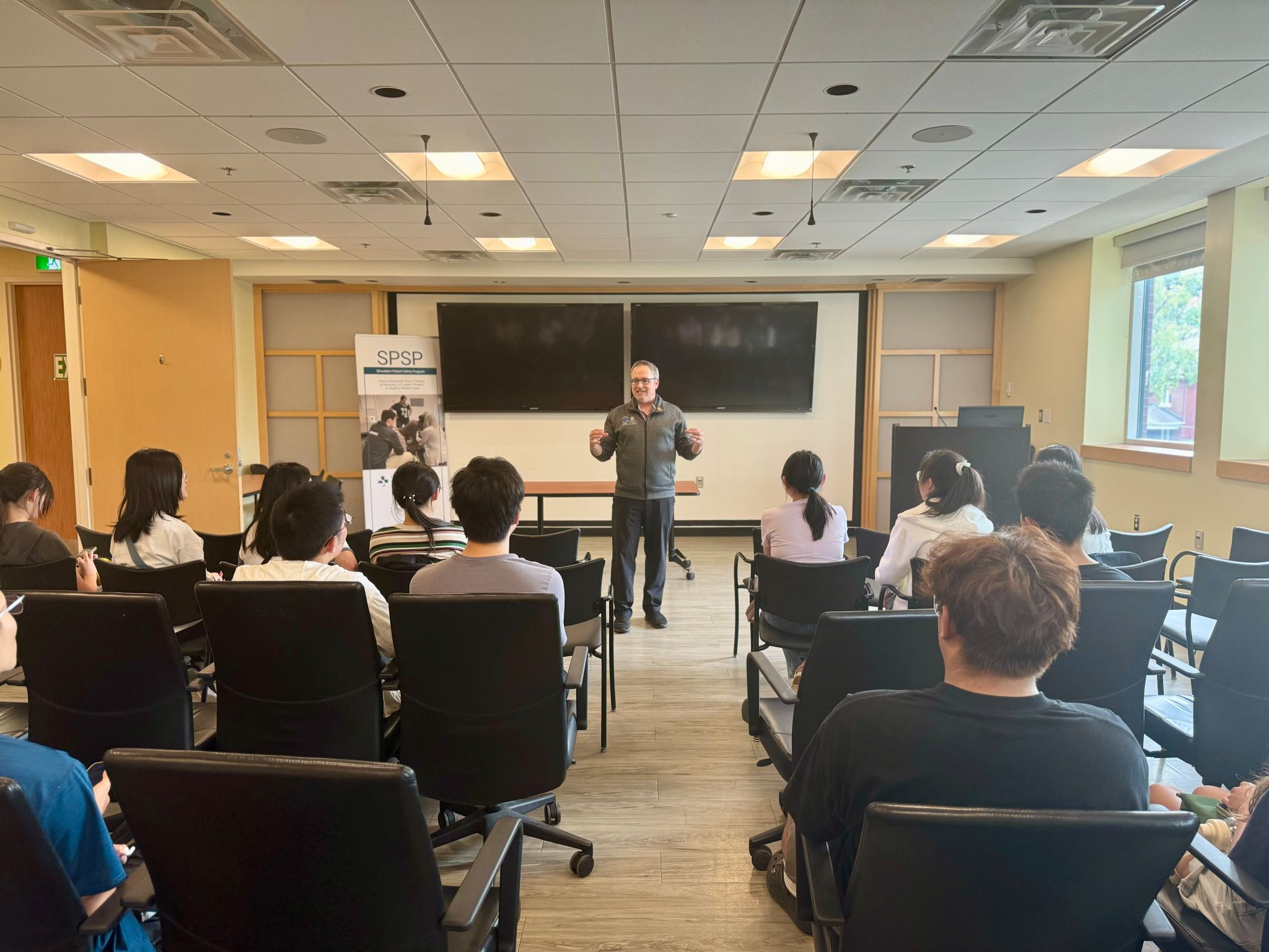 本周五,我们去到了渥大的医学技能模拟中心 (Skill and Simulation Centre)。在负责人的带领下,我们首先参观了模拟手术室和模拟急诊室。这两个房间还原了医院手术室中的真实场景,且拥有着极其完善的配套设备:心脏监护仪,呼吸机,心脏起搏器等不一而足。在参观过程中,我们深切感受到身为医生在面临紧急情况下的使命感与责任感。