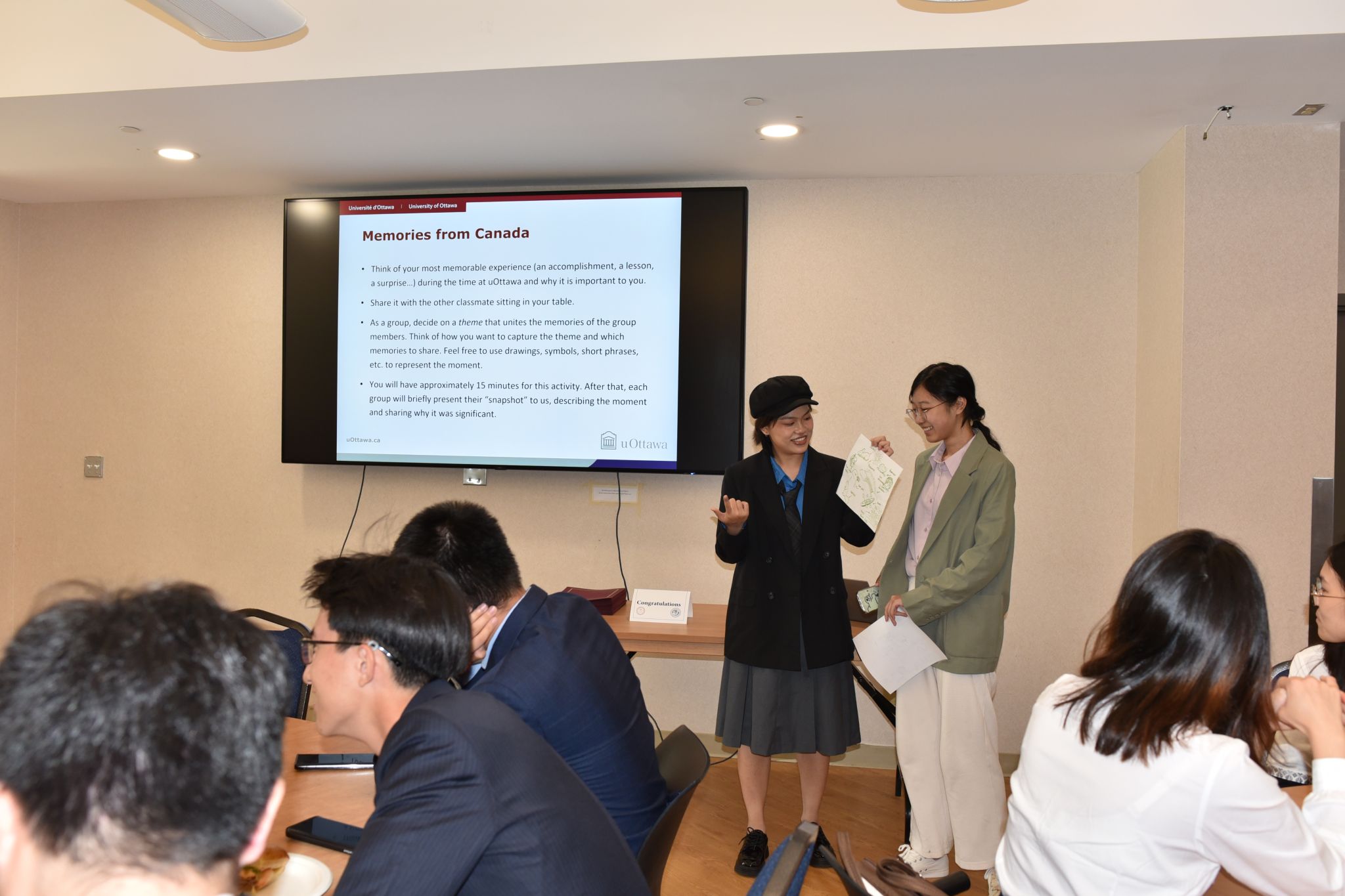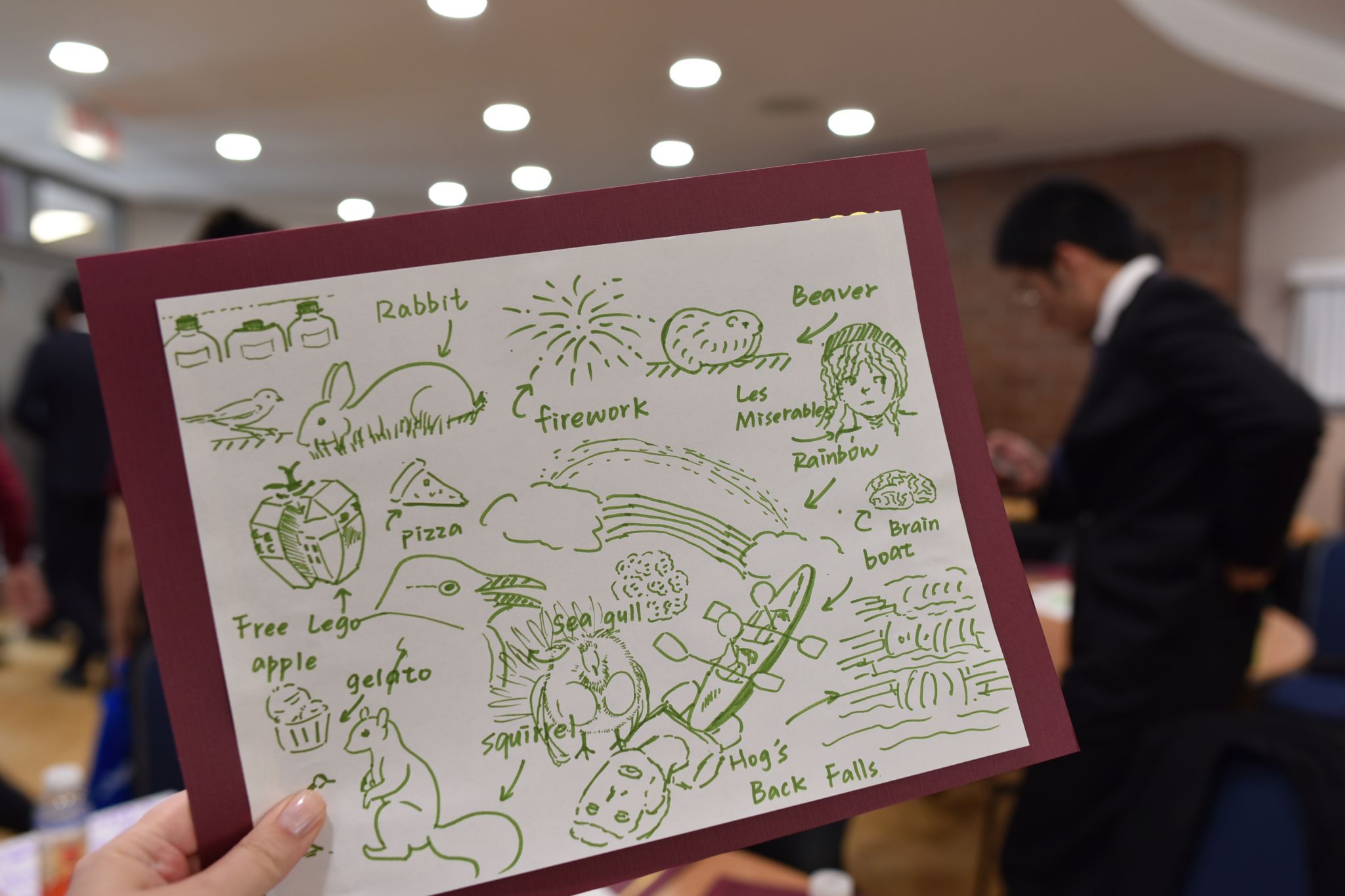活动的高潮是绘画展示环节。每桌小组通过绘画展示了这一月中的精彩时刻,小组代表们生动讲述了各自的故事。无论是美味的鸡蛋料理,还是旅行中的迷人景色,大家都用充满创意和热情的方式呈现出来。