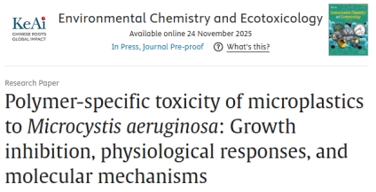 近日,上海交通大学医学院-国家热带病研究中心全球健康学院胡增运课题组在期刊《Environmental Chemistry and Ecotoxicology》(影响因子8.2,中科院JCR 1区,TOP期刊)上发表了题为“Polymer-specific toxicity of microplastics to Microcystis aeruginosa: Growth inhibition, physiological responses, and molecular mechanisms”的研究论文。该研究首次系统比较并揭示了四种常见微塑料对水生蓝藻的特异性毒性路径,为科学评估不同聚合物微塑料的水生态系统安全及人类健康潜在风险提供了关键依据。