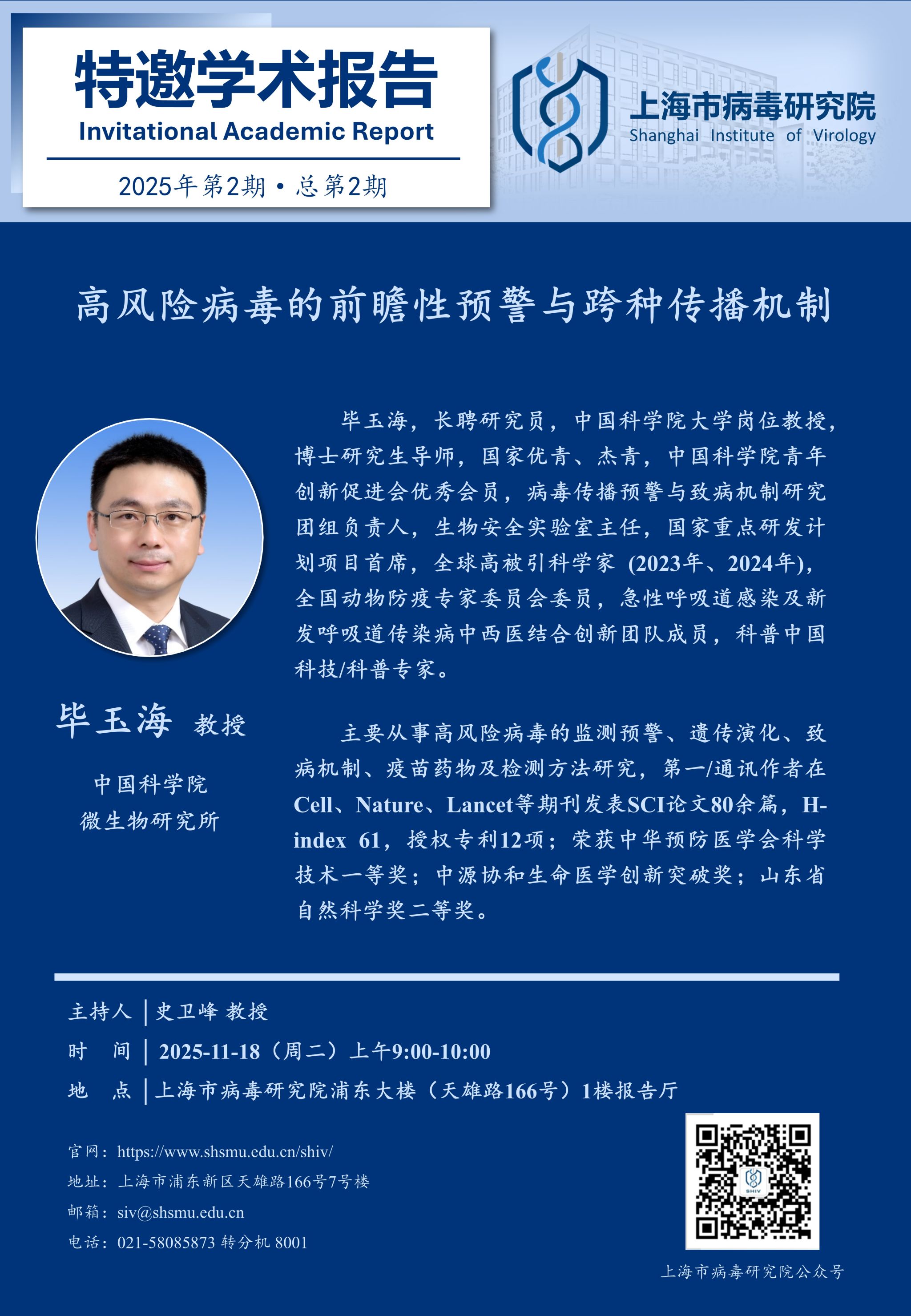特邀学术报告(第二期)-高风险病毒的前瞻性预警与跨种传播机制