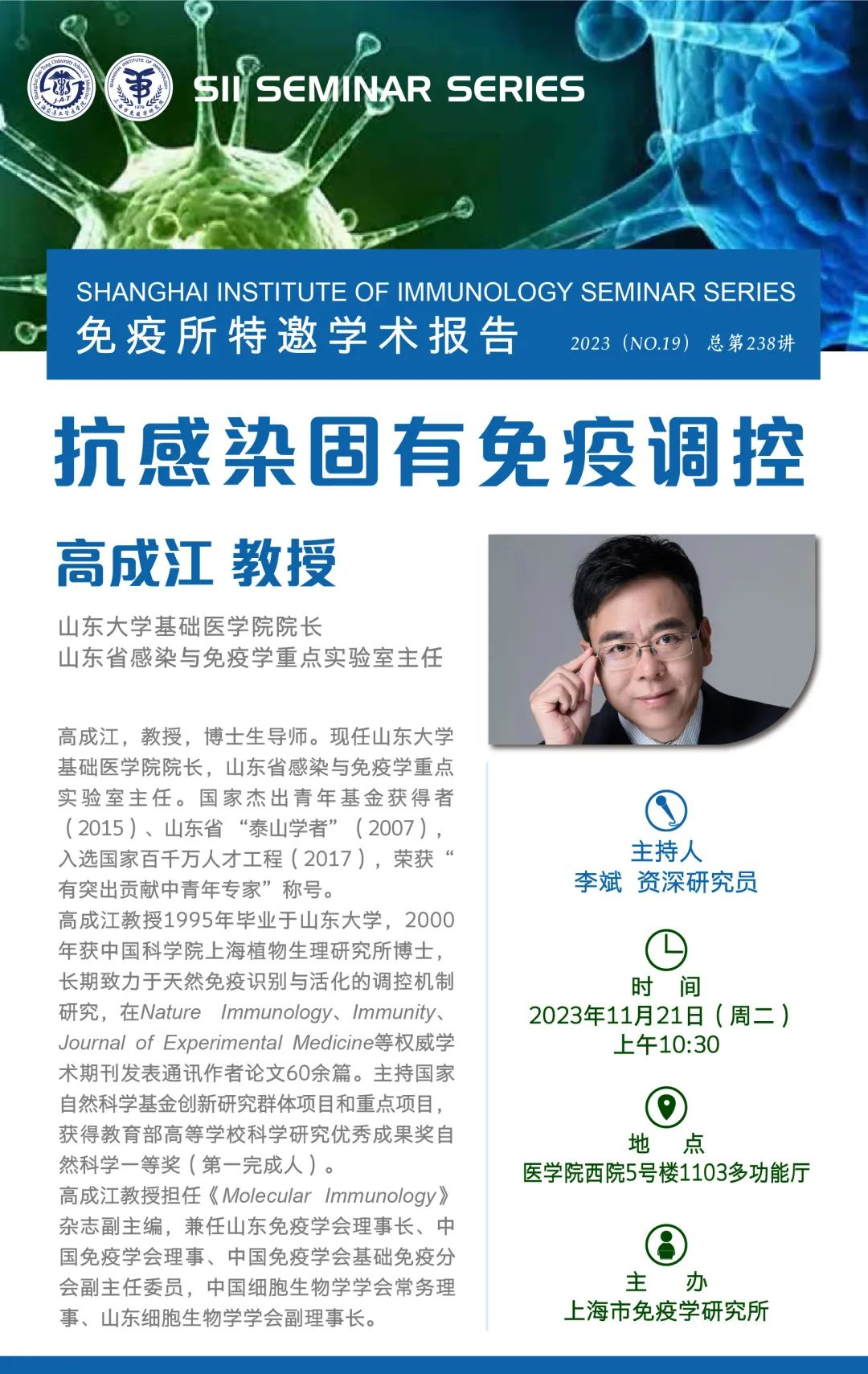 免疫所特邀学术报告第238讲|山东大学 :高成江 教授 发布日期:2023-11-16