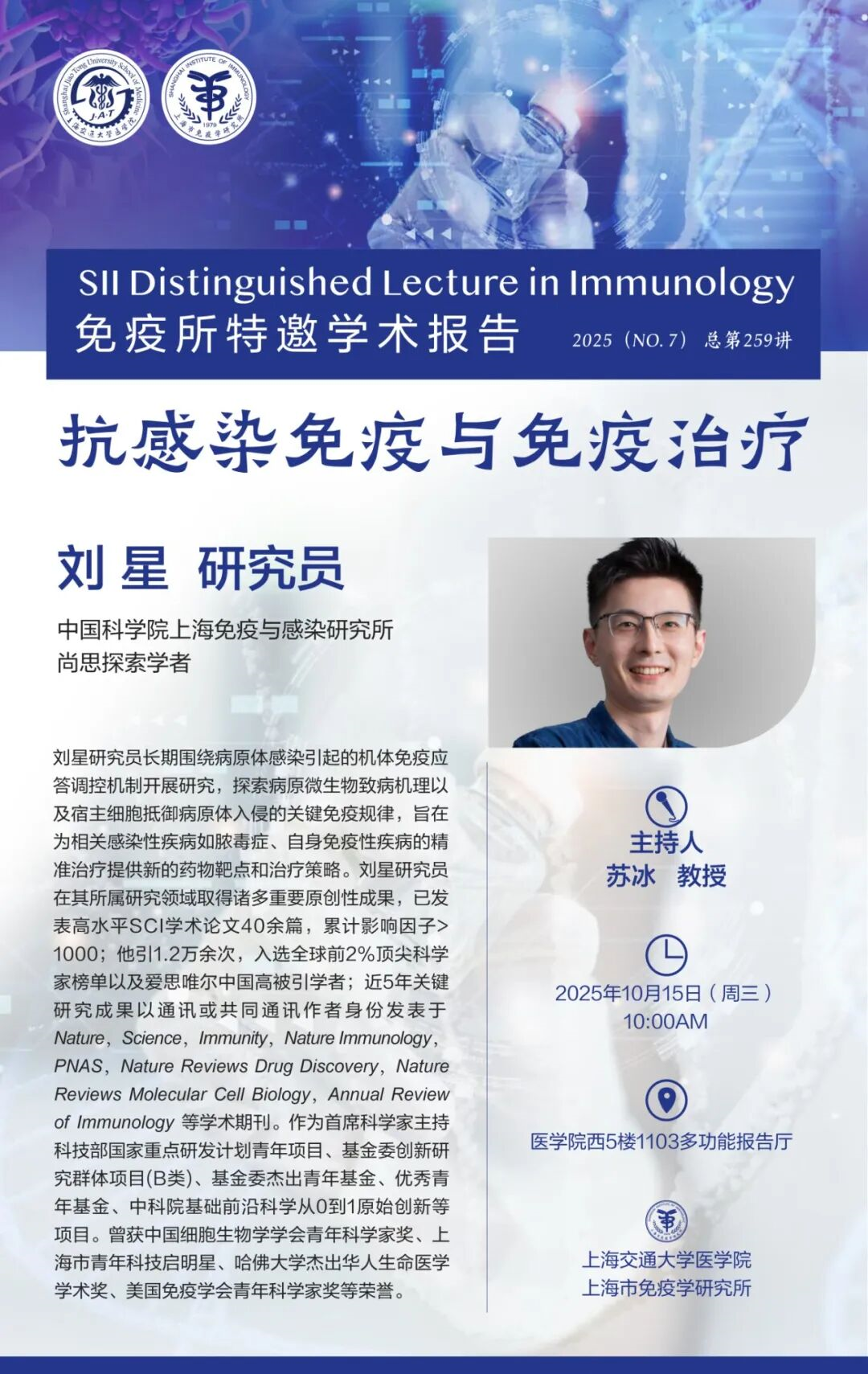 免疫所特邀学术报告第259讲|中国科学院上海免疫与感染研究所 刘星研究员 发布日期:2025-10-13