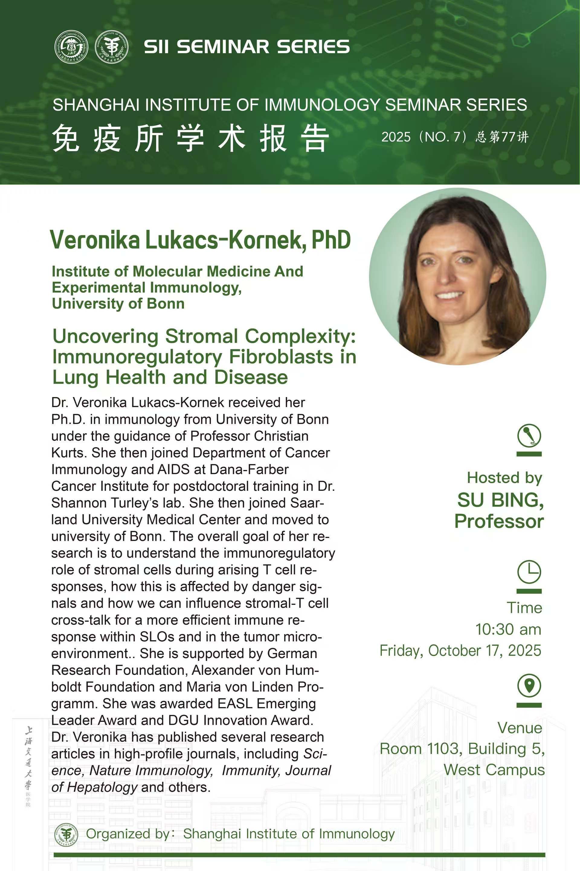 免疫所学术报告第76讲|德国波恩大学 Veronika Lukacs-Kornek, PhD 发布日期:2025-10-15