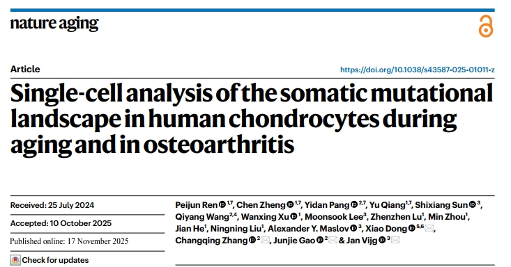 Nature Aging │ Researcher from School of Public Health at Shanghai Jiao Tong University and Collaborating Institutions Characterize the Somatic Mutation Landscape of Human Chondrocytes