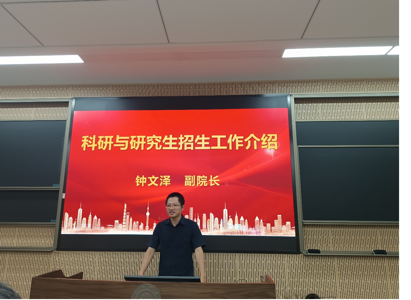 紧接着,汪一心副院长对学院情况进行了详细介绍。他回顾了学院“三校合并”以及后续与上海交通大学整合的发展历程,明确了学院“国际领先”的定位,系统阐述了从本科到博士后的完整培养体系以及双学位等特色项目。同时,他聚焦学院的四大核心研究方向及其配套科研平台,介绍了师资队伍规模和人才梯队建设成果(其中包括王慧院长个人学术成就),并提及学院在顶级期刊发表的研究成果以及海外合作交流资源。最后,他说明了学生就业深造前景、直博名额分配以及两校区教学生活设施,全面展示了学院的发展积淀、综合实力与育人优势。