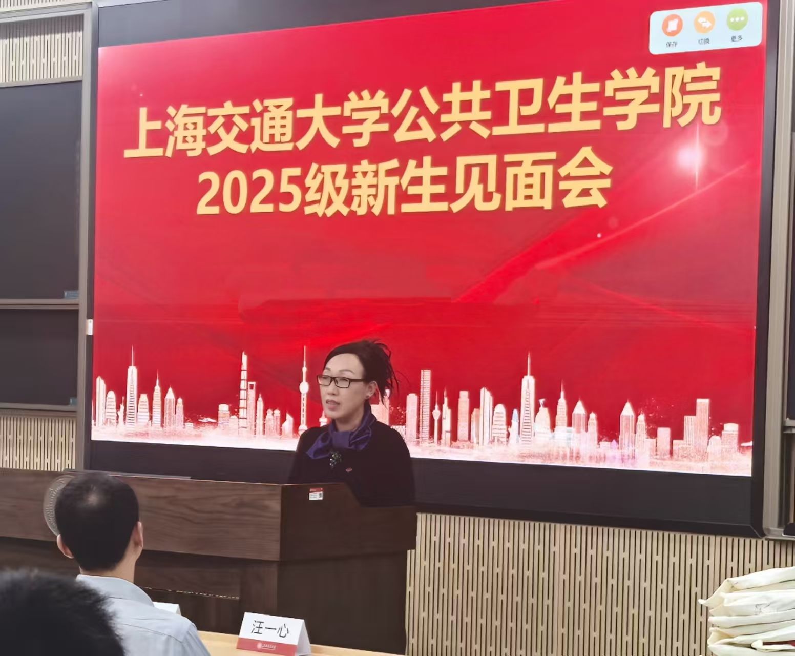 近日,上海交通大学公共卫生学院 2025 级新生见面会在闵行校区东上院 111 教室举行。学院院长王慧、党委书记章新、党委副书记张晓晶、副院长汪一心、副院长钟文泽,以及教务办公室相关老师与全体 2025 级本科新生共同出席会议,会议由汪一心副院长主持。