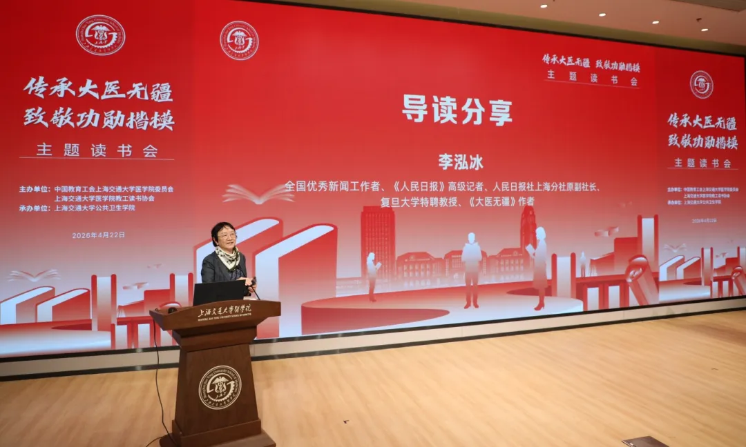 赵文华在总结讲话中指出,在世界读书日到来之际和首个“全民阅读活动周”期间,共读《大医无疆》读书会活动,既是学习习近平新时代中国特色社会主义思想引领办学使命的生动实践,也是将学习王振义院士的大医精神与传承交医130年办学历史相结合的重要举措。他强调,真正的大医不仅有精湛的医术,更有滚烫的仁心;真正的科研不仅要追求学术突破,更要坚守为民初心;真正的教育不仅要传授知识本领,更要传承精神品格。他寄语全体交医人把阅读作为终身必修课,既读专业之书夯实医术根基,也读人文之书涵养医者温度,更读精神之书汲取奋进力量,让读书成为交医的鲜明标识,以行动传承“大医无疆”的深刻内涵,为健康中国建设贡献交医力量。