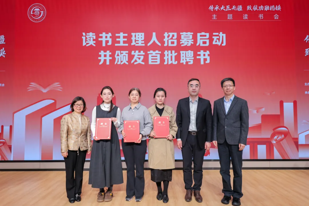活动同步启动了读书主理人招募,面向全体交医师生医护员工招募热爱阅读的“主理人”。公共卫生学院作为首批先行先试单位,已招募首批5位读书主理人。康力、诸海英、章新为来到现场的主理人陆唯怡、朱静芬、王慧芳颁发聘书,期待他们带领更多师生爱上阅读、传承医魂。