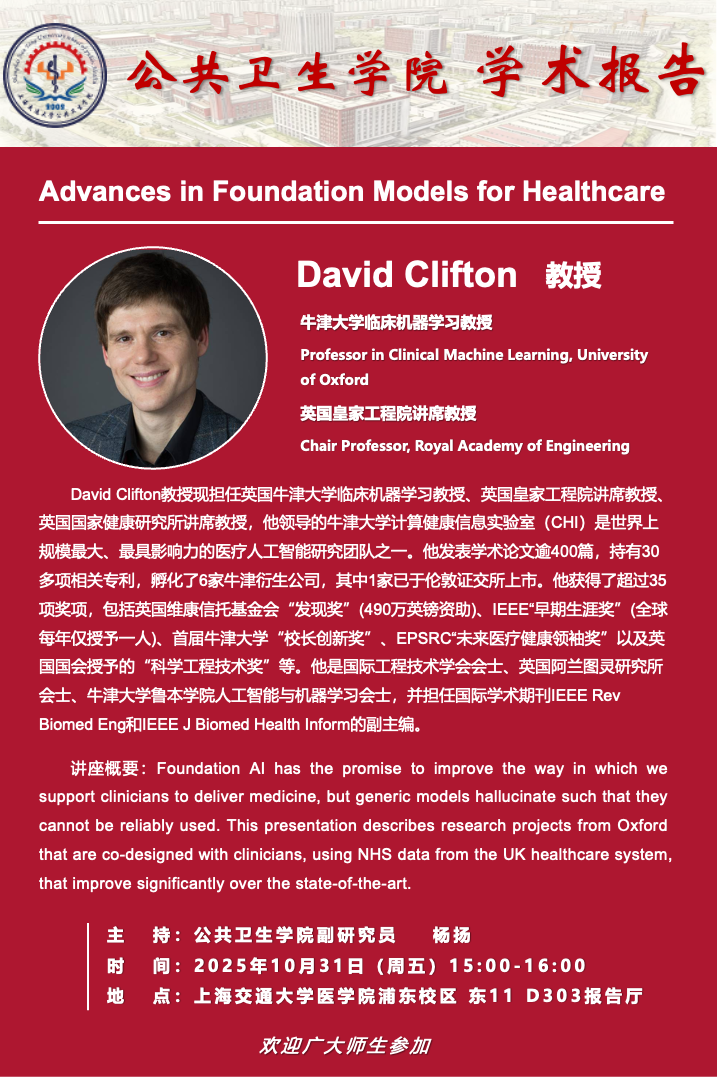 公共卫生学院学术报告:Advances in Foundation Models for Healthcare