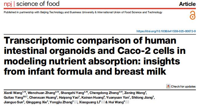 近日,上海交通大学公共卫生学院王慧团队在国际知名学术期刊《npj Science of Food》在线发表了题为“Transcriptomic Comparison of Human Intestinal Organoids and Caco-2 Cells in Modeling Nutrient Absorption: Insights from Infant Formula and Breast Milk”的研究论文。该研究创新性构建了模拟婴幼儿消化-小肠类器官吸收一体化体外评价模型,系统比较了人源小肠类器官与传统Caco-2细胞模型在营养吸收研究中的性能差异,并基于该平台利用多组学全面解析了母乳与不同加工工艺配方奶粉在肠道应答、生长发育信号激活及潜在毒性效应方面的精细化差异,为婴幼儿配方食品的功能评价、工艺优化及安全性评估提供了全新范式。