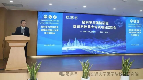 1月12日下午,由上海交通大学牵头承担的两项“脑科学与类脑研究”国家科技重大专项项目启动会在上海交通大学医学院松江研究院举行。启动项目为松江研究院仇子龙教授、高郑润研究员分别主持的“孤独症核心特征的神经机制和基因治疗研究”及“多模态脑机接口系统调控‘小脑-丘脑-皮层’环路重塑改善卒中后多维功能障碍的机制与应用研究”。