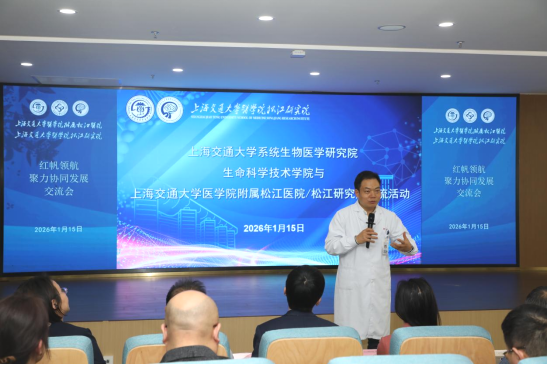 2026年1月15日下午,以“红帆领航•聚力协同发展”为主题的交流活动在上海交通大学医学院松江研究院一楼学术报告厅顺利举行。上海交通大学系统生物医学研究院、生命科学技术学院与上海交通大学医学院附属松江医院/松江研究院的多位领导、专家齐聚一堂,共同探讨医学领域的协同发展之路。活动由松江研究院副院长仇子龙主持。