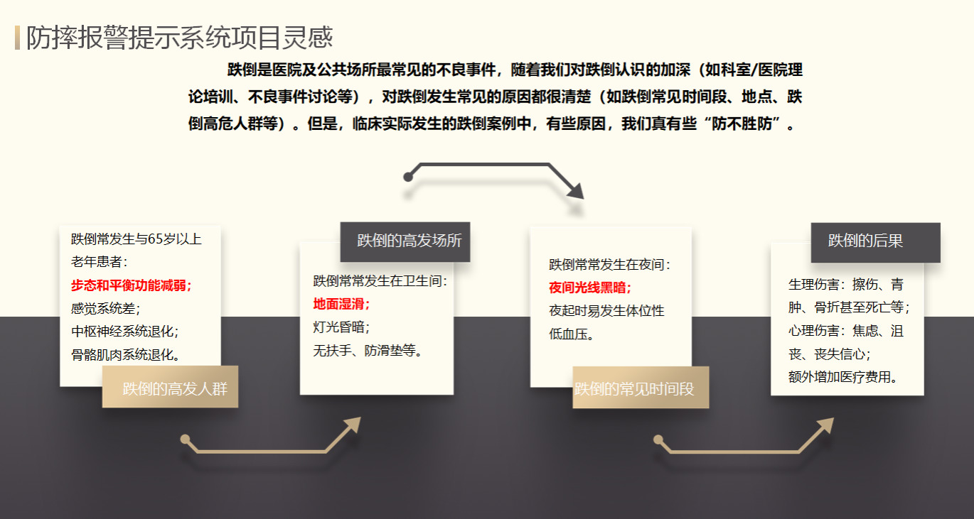 我们注意到,在容易发生跌倒滑倒事件的医院、学校、商场等地已有一些防跌倒滑倒设施,比如扶手、防滑垫等,也有一些跌倒滑倒后的报警设施如紧急按铃、探头监控等。本项目的两项授权专利,可以单独形成产品,也可以和现有的报警设施相结合配套使用。我们已经联系生产制造前述报警设施的企业,把专利的技术方案告知企业,进一步跟企业洽谈专利转让或者专利许可事宜(两种方式都可以),如果洽谈成功,我们将积极配合企业研发并改进其原来报警设施,把防摔报警提示系统嵌入其已有的紧急按铃、探头监控中。