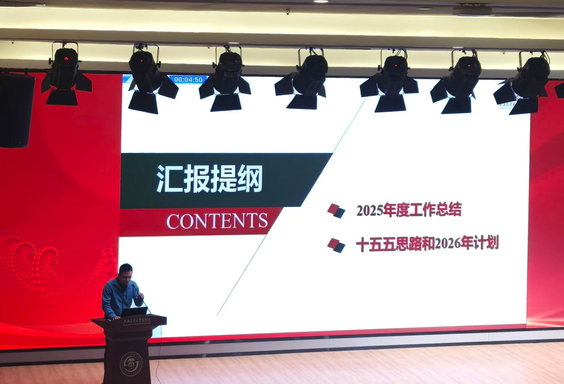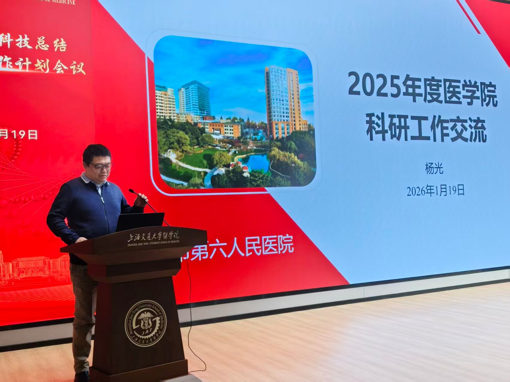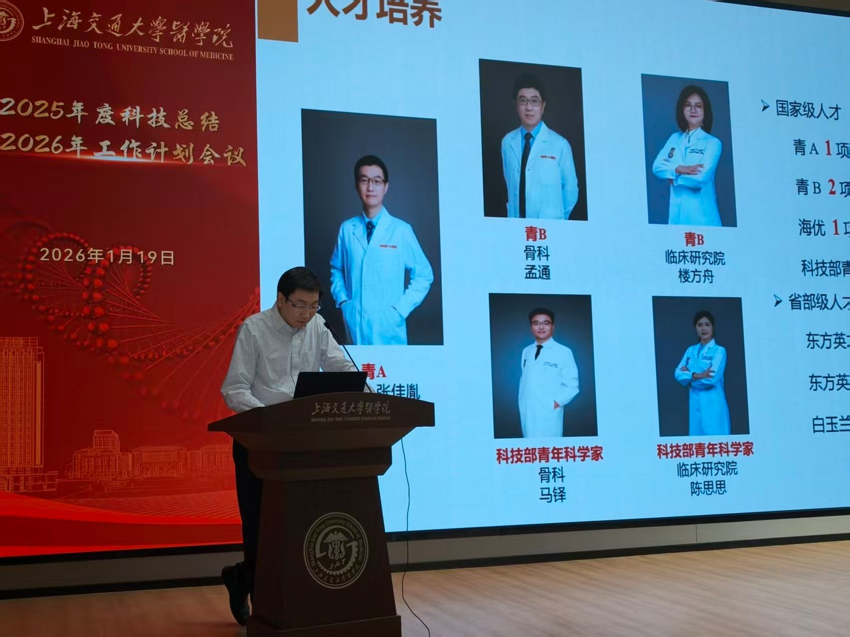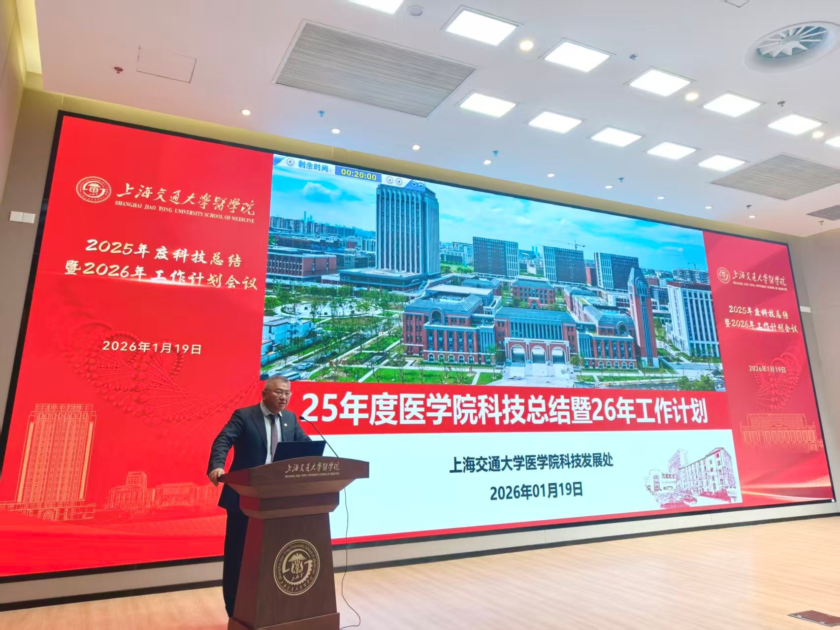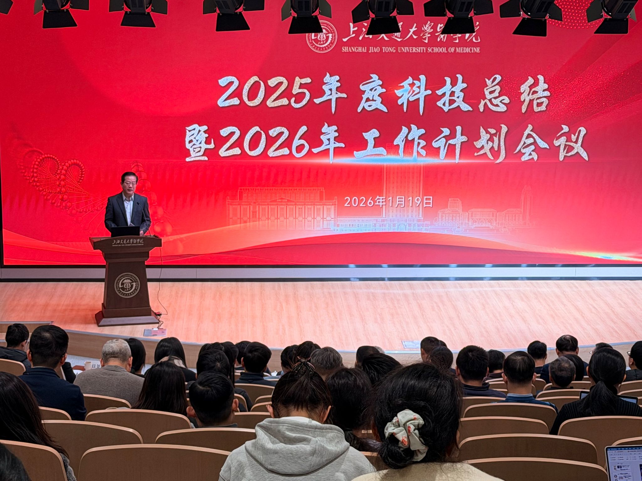 1月19日上午,上海交通大学医学院科技发展处在浦东校区东3楼行政会议中心交医厅召开2025年度科技总结暨2026年工作计划会议。中国工程院院士、医学院院长范先群,副院长郑俊克出席会议并讲话。科技发展处处长周翔天主持会议。各二级学院、附属医院、研究机构平台科研负责人与科研管理人员齐聚一堂,共话发展、共谋新篇。