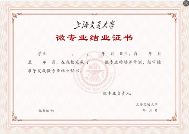 微专业结业证书(拟设计,实际发放以学校定稿为准)
