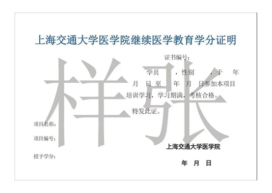 1. 上海交通大学医学院统一颁发的“上海交通大学医学院非学历教育结业证书”: