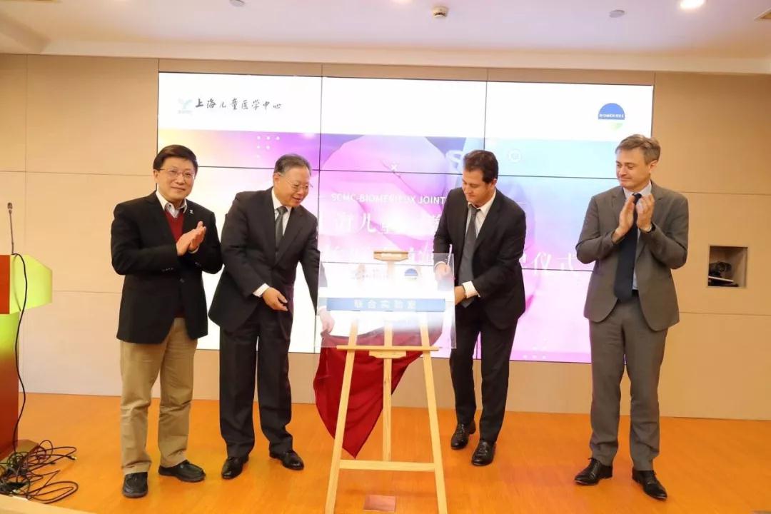 12月3日上午,上海儿童医学中心—生物梅里埃联合实验室揭牌仪式在上海交通大学医学院附属上海儿童医学中心举行。上海市科学技术委员会副主任傅国庆、上海儿童医学中心院长江忠仪、生物梅里埃全球董事长兼CEO亚历山大•梅里埃、亚太区总裁皮埃尔•布鲁德共同为“联合实验室”揭牌。