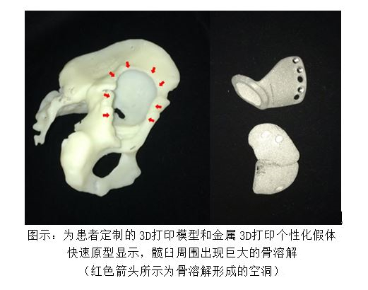 图示:为患者定制的3D打印模型和金属3D打印个性化假体