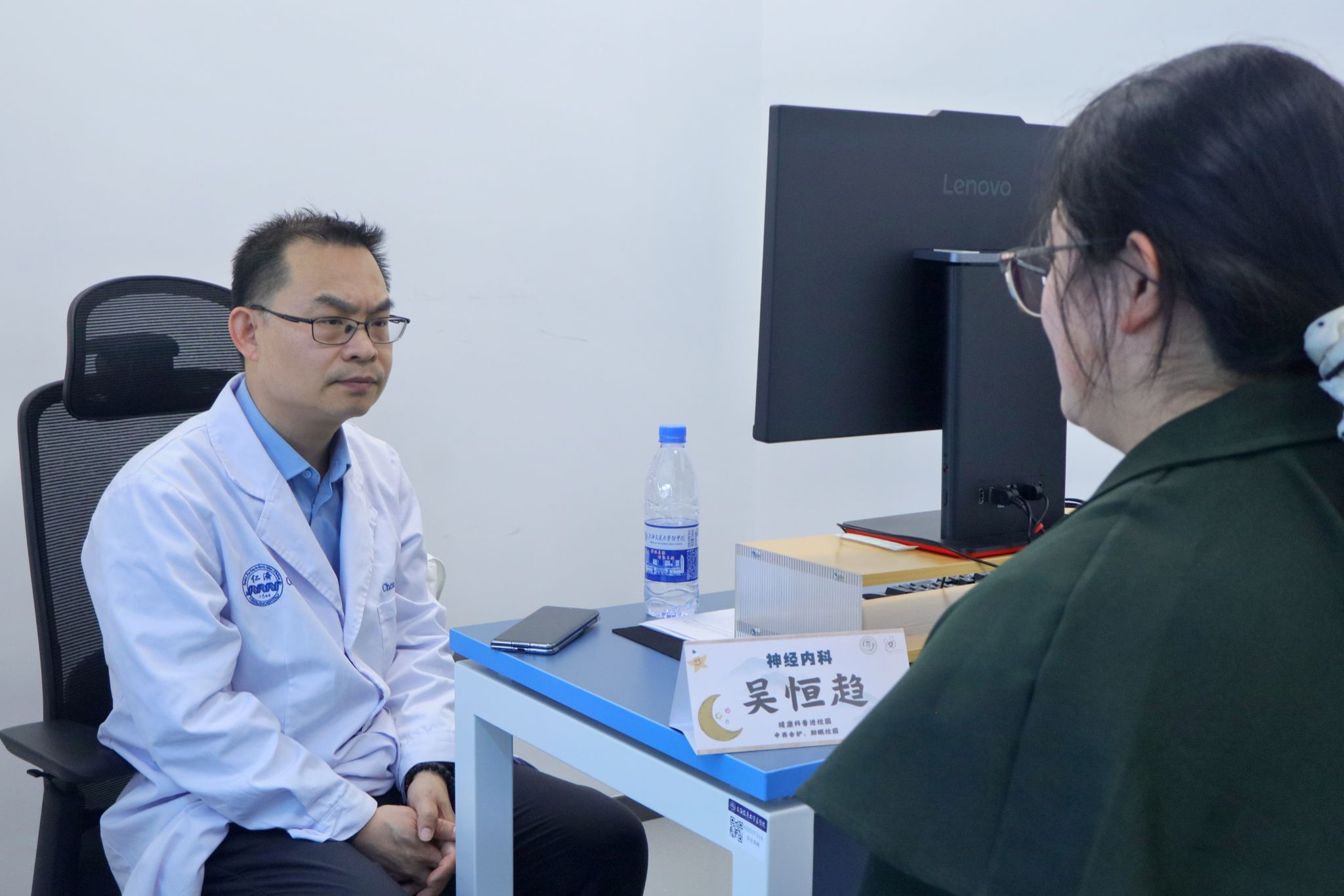 活动分为两大环节:健康科普讲座上,吴恒趋医生从现代神经医学视角,讲解睡眠生理机制、常见误区及科学改善方法,解答学子考前焦虑失眠、作息紊乱等疑问;随后的1v1义诊中,吴恒趋医生侧重现代神经医学睡眠干预,周佩娟医生立足中医整体调理,提供个性化助眠方案。