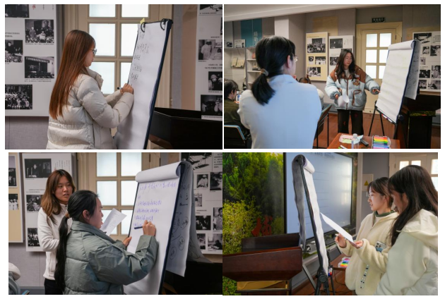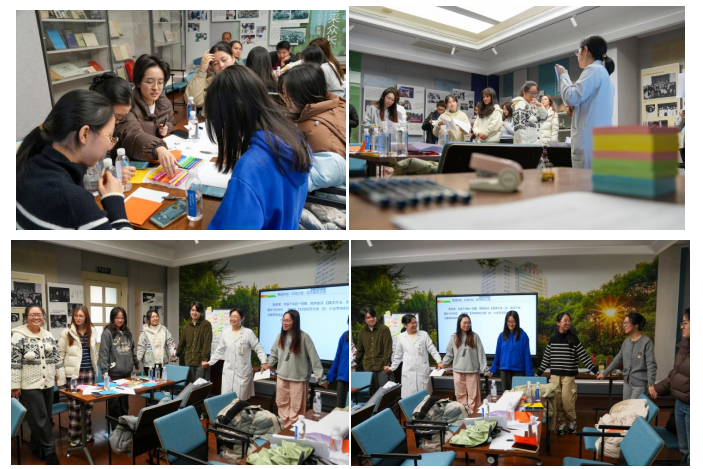 在“压力应对智慧墙”环节,同学们进行随机分组,每组选取一个最常见或最棘手的压力源作为议题,集思广益,探寻应对策略。随后各小组依次上台分享交流,将讨论出的方法收集在一起,共同完成了压力应对的“智慧墙”。大家想到的应对方法涵盖认知、情绪、行为、人际等多个层面,如调整期望、任务分解、有效沟通等。通过组内和组间的交流讨论,让同学们能够汲取更多团队智慧,拓宽应对压力的思路,最大化学习效益。