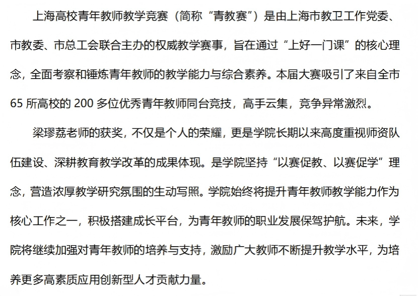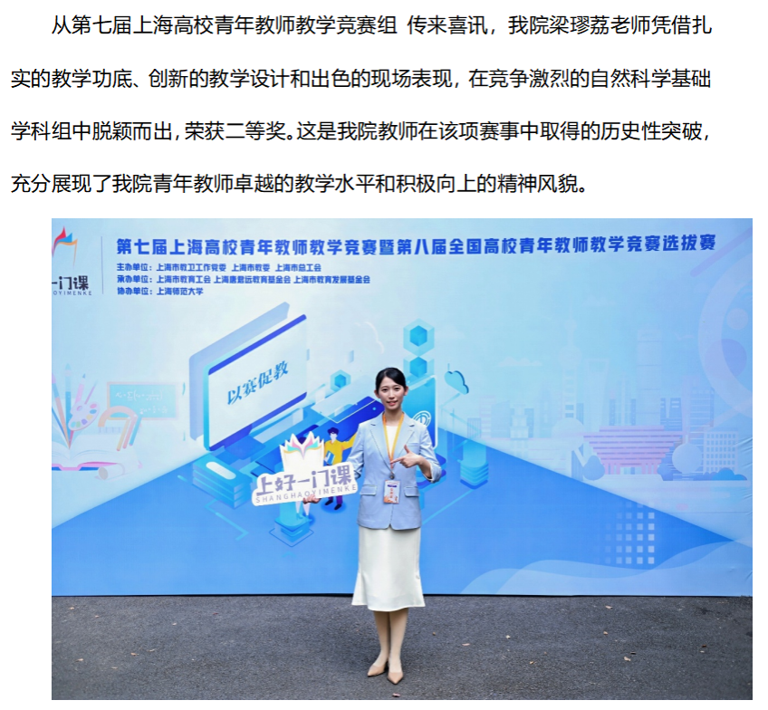 在第七届上海高校青年教师教学竞赛中荣获佳绩