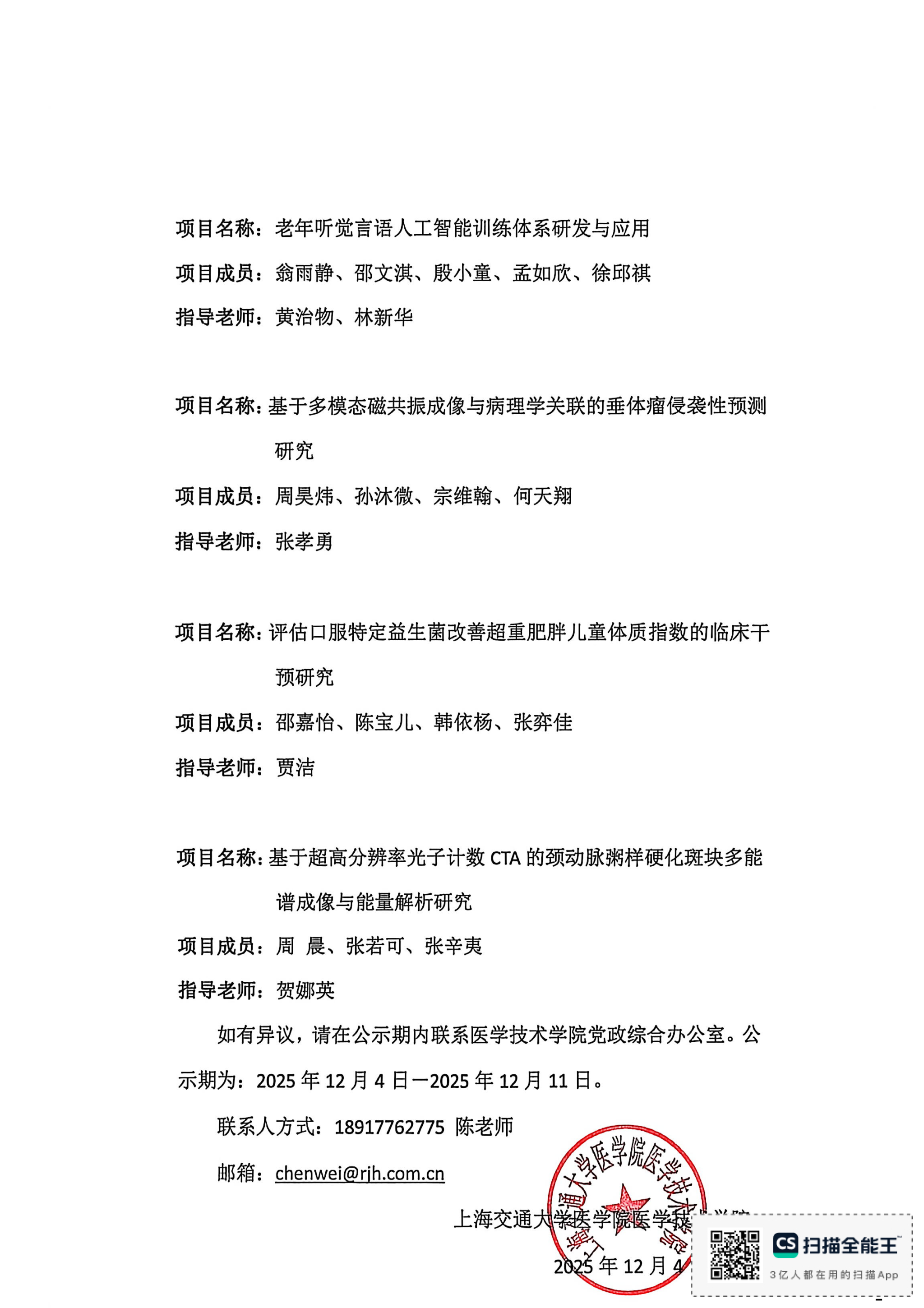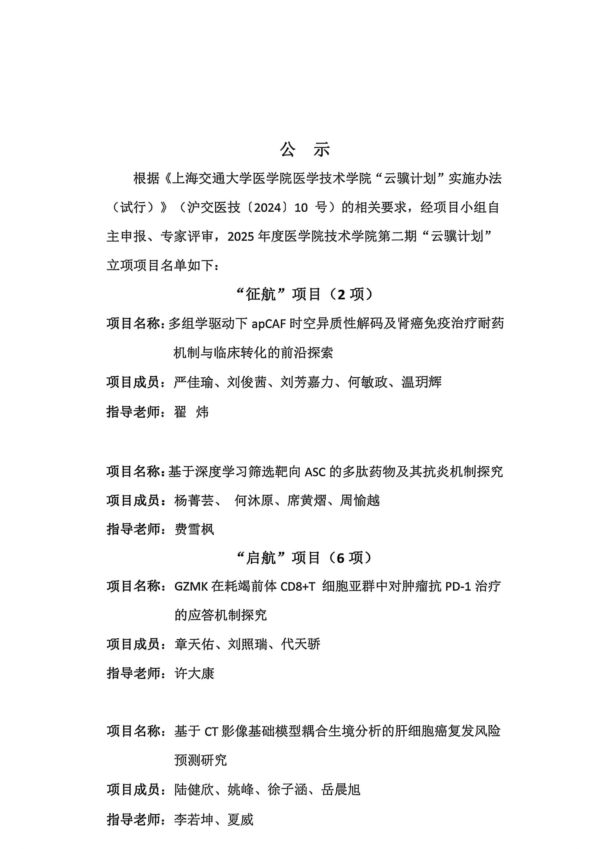 医学技术学院2025年度第二期“云骥计划”立项项目名单公示
