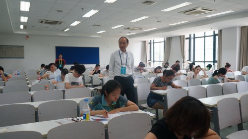 8点不到,考生们就已冒着酷暑来到考场外,等候开考。815分,监考人员逐个校验考生的准考证和身份证信息后允许考生进入考场。本次考试由营养系主任蔡威教授担任主考,营养系办公室主任沈秀华和考试中心王峰伟分别担任副主考,由上海营养学会郭红卫教授、郭俊生教授和中国营养学会2名工作人员作为巡考组成员对考试的监考工作进行了全程监督。1130分,整场考试安全有序地顺利结束。