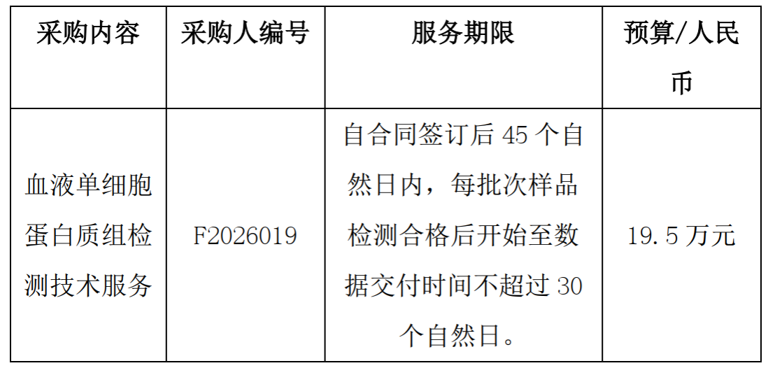 2. 项目名称:血液单细胞蛋白质组检测技术服务项目采购